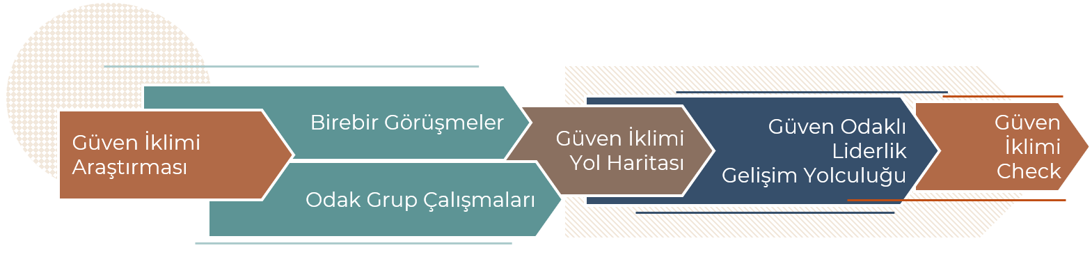 3. Güven İklimi Yol Haritası Güven haritasının bulguları ışığında hem liderlerin gelişim yolculuğuna, hem de şirketin üst yönetimine ve İK yönetimine yol gösterecek eylem haritası hazırlanır.